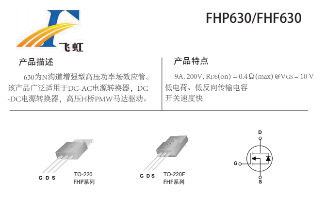 FHP630A的主要封裝形式是TO-220,630A低壓mos管,630A腳位排列位GDS。這款630A場效應(yīng)管產(chǎn)品具體參數(shù):Vgs(±V):30;VTH(V):2-4;ID(A):9;BVdss(V):200。RDS (on) = 0.4mΩ(typ)@V GS =10V,低電荷、低反向傳輸電容開關(guān)速度快,低內(nèi)阻,大功率的特點。